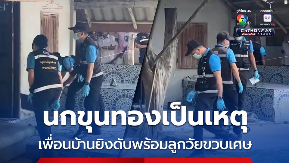 ทะเลาะเรื่องนกขุนทอง เพื่อนบ้านโหด กราดยิงหนุ่มขับแท็กซี่ดับพร้อมลูกวัยขวบเศษ ในบ้านพัก ส่วนภรรยาบาดเจ็บ