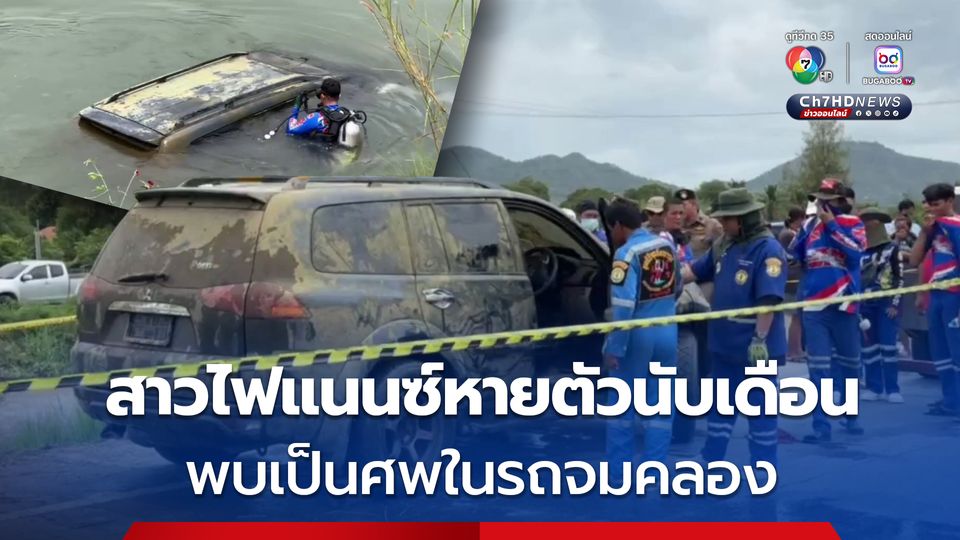 ญาติตามหาสาวบริษัทไฟแนนซ์หายตัวไร้ร่องรอยนายเกือบเดือน ล่าสุดพบเป็นศพในรถจมคลองชลประทาน