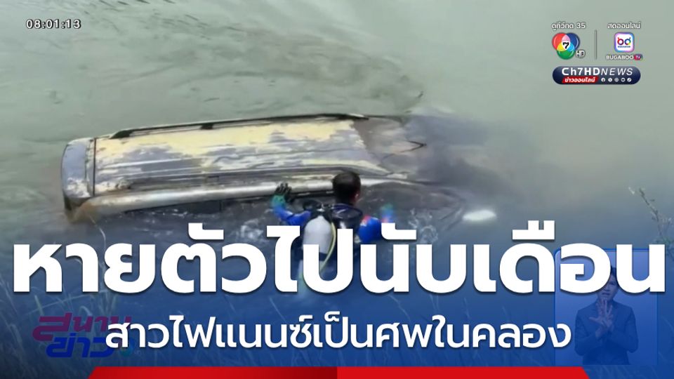 สนามข่าว 7 สี - หญิงอายุ 41 ปี หายตัวไปนานเกือบ 1 เดือน ก่อนเมื่อวานนี้ถูกพบเสียชีวิตอยู่ในรถยนต์ของตัวเอง จมอยู่ในคลองชลประทาน