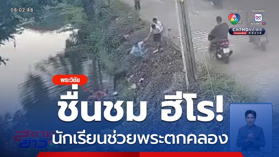 สนามข่าว 7 สี - ทำดีต้องชื่นชม !!! กลุ่มนักเรียนที่ จังหวัดนนทบุรี เห็นพระนั่งรถวีลแชร์ไฟฟ้าแล้วรถเสียหลัก พุ่งตกคลอง รีบวิ่งไปช่วยเหลือเอาไว้ได้ทันเวลาพอดิบพอดี