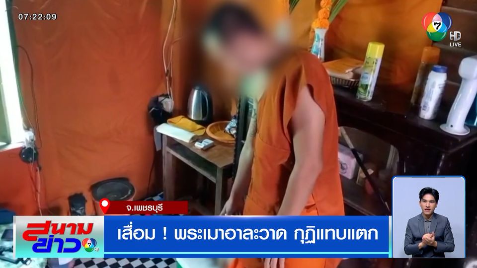 สนามข่าว 7 สี - พฤติกรรมทำเสื่อมวงการสงฆ์อีกแล้ว พระที่จังหวัดเพชรบุรี ชวนเพื่อนมามั่วสุมเสพยาบ้าในกุฏิ พอเสพยาเกินขนาด มึนเมาได้ที่อาละวาดกุฎิแทบพัง ชาวบ้านทนไม่ไหวต้องแจ้งเจ้าหน้าที่