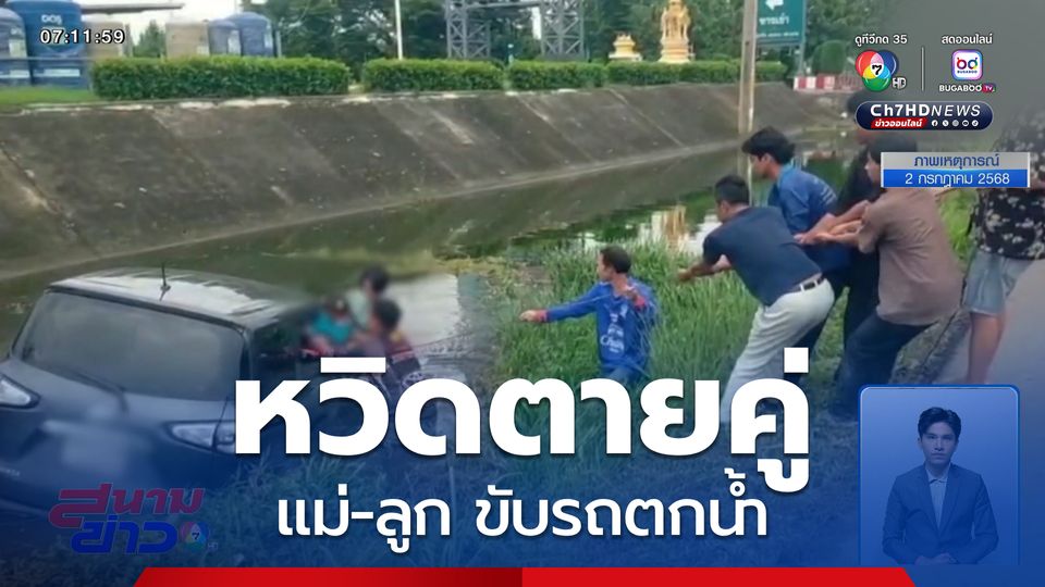 สนามข่าว 7 สี - นาทีชีวิต แม่หันไปหยิบกระเป๋าที่เบาะหลัง หันมาอีกทีขับรถพุ่งตกคูน้ำข้างทาง เคราะห์ดีชาวบ้านผ่านมาพบ เร่งให้ความช่วยเหลือ
