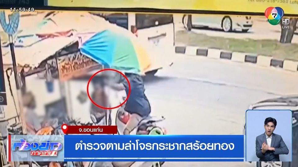 กล้องวงจรปิดริมถนนในตัวเมืองขอนแก่น จะเห็นภาพ หญิงอายุ 63 ปี ยืนรอส้มตำอยู่ดี ๆ ช่วง 11.00 น เมื่อวาน (2 ก.ค.) ถูกคนร้ายทำทีขี่รถจักรยานยนต์มาจอดใกล้ ๆ เหมือนจะมาซื้อของแถวนั้น แต่ไม่ใช่ ก่อนจะค่อย ๆ เอื้อมมือ ไปกระชากสร้อยทอง หนัก 1 บาทจากคอเหยื่อ เร่งเครื่องรถหนีไป เคราะห์ยังดี สร้อยขาดครึ่ง ทำให้คนร้ายได้ทองไปแค่บางส่วน โดยผู้เสียหายเข้าแจ้งความแล้ว