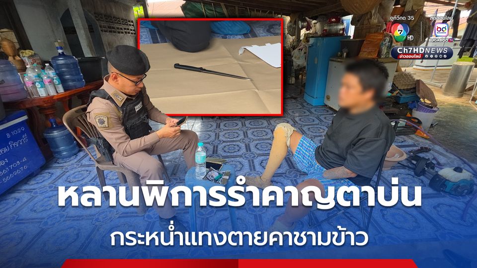 จากการสอบถาม นายวีระศักดิ์ บอกว่า ตนเองขาแขนขาดมานานแล้ว เนื่องจากถูกไฟฟ้าช็อต ต้องตัดแขนกับขาทิ้งเพื่อรักษาชีวิต มาอยู่ที่บ้านกับตา ส่วนตาเป็นคนขี้บ่น ชอบเอาเรื่องอดีตมาเล่าให้ฟังบ่อยครั้ง รู้สึกรำคาญมาตลอด จนเช้านี้เตรียมอาหารปลาย่างให้ตากิน ตาก็บ่นอีก จนเก็บอารมณ์ไม่ไหว เดินไปหยิบมีดปลายแหลมที่ครัว แล้วเดินมาทางด้านข้างหลังตาที่นั่งอยู่ จากนั้นกระหน่ำแทงไป 2-3 ครั้ง จนตาคว่ำหน้าจมอกองเลืองเลือดเสียชีวิต จากนั้นตนเองก็เดินไปมา รู้ว่าก่อเหตุไปแล้วและสำนึกผิด จึงโทรศัพท์แจ้งตำรวจว่าเป็นคนก่อเหตุแทงตาตัวเองจนเสียชีวิต