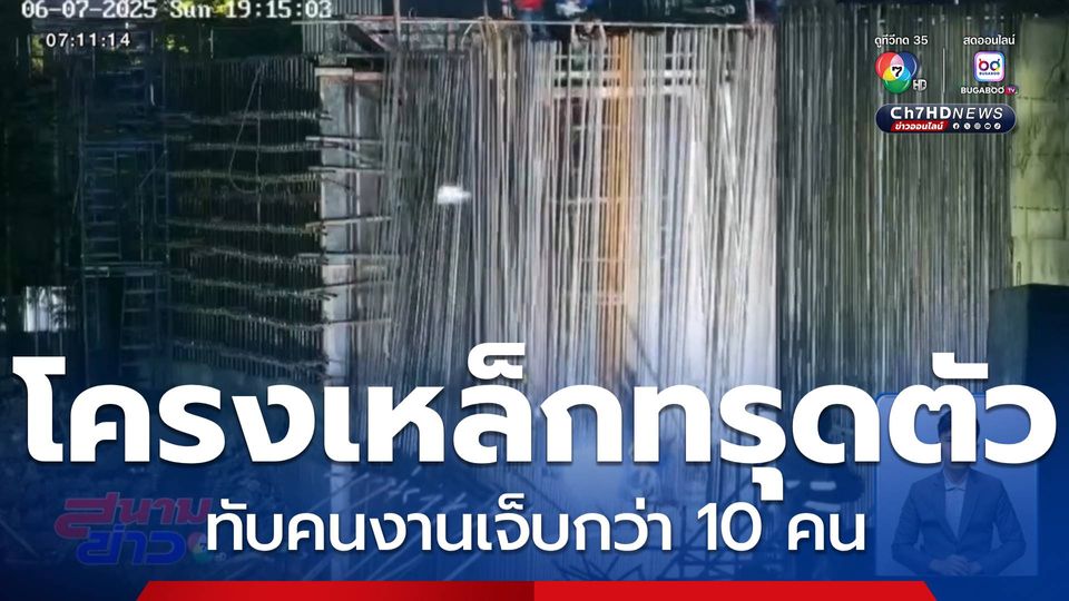 สนามข่าว 7 สี - วันนี้ เจ้าหน้าที่พิสูจน์หลักฐานจะลงพื้นที่ตรวจหาสาเหตุโครงเหล็กทรุดตัวทับคนงาน ระหว่างก่อสร้างอุโมงค์ส่งน้ำ ทำให้มีผู้บาดเจ็บ 12 คน ด้านผู้ควบคุมงานยืนยันมีคนทำงาน 160 คน ได้ออกจากจุดเกิดเหตุครบแล้ว ไม่มีใครติดค้าง