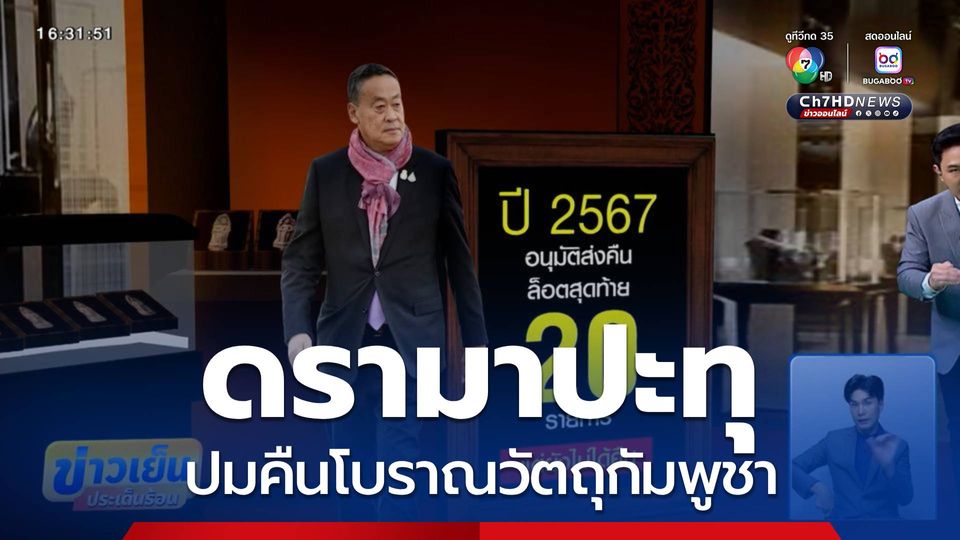ข่าวเย็นประเด็นร้อน - เรื่องการคืนโบราณวัตถุโบราณให้ทางกัมพูชา เกิดเป็นดรามา หลังจากที่ นางสาวแพทองธาร ชินวัตร นายกรัฐมนตรี เข้ามาดำรงตำแหน่ง รัฐมนตรีว่าการกระทรวงวัฒนธรรม เพราะนางสาวแพทองธาร กำกับกรมศิลปากรโดยตรงและมีอำนาจตัดสินใจ โดยฝ่ายตรงข้ามตีความว่า "การคืนของ = ยอมกัมพูชา" ทำให้เรื่องวัฒนธรรมกลายเป็นเรื่องการเมืองทันที