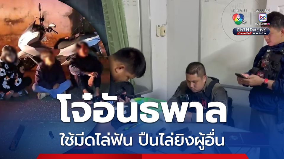 ตร.จับกุมแก๊งวัยรุ่นอันธพาล ที่ก่อเหตุใช้มีดยาวไล่ฟัน-ใช้ปืนบีบีกันไล่ยิงผู้อื่นกลางเมืองแม่สาย