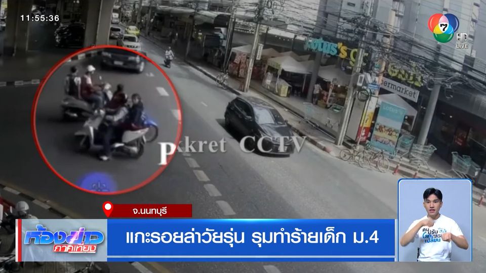 ห้องข่าวภาคเที่ยง - มีนักเรียนชายคนหนึ่ง ถูกกลุ่มวัยรุ่นนับ 10 คน รุมทำร้าย ในพื้นที่นนทบุรี ตอนนี้ตำรวจไล่กล้องวงจรปิดล่าตัวแล้ว