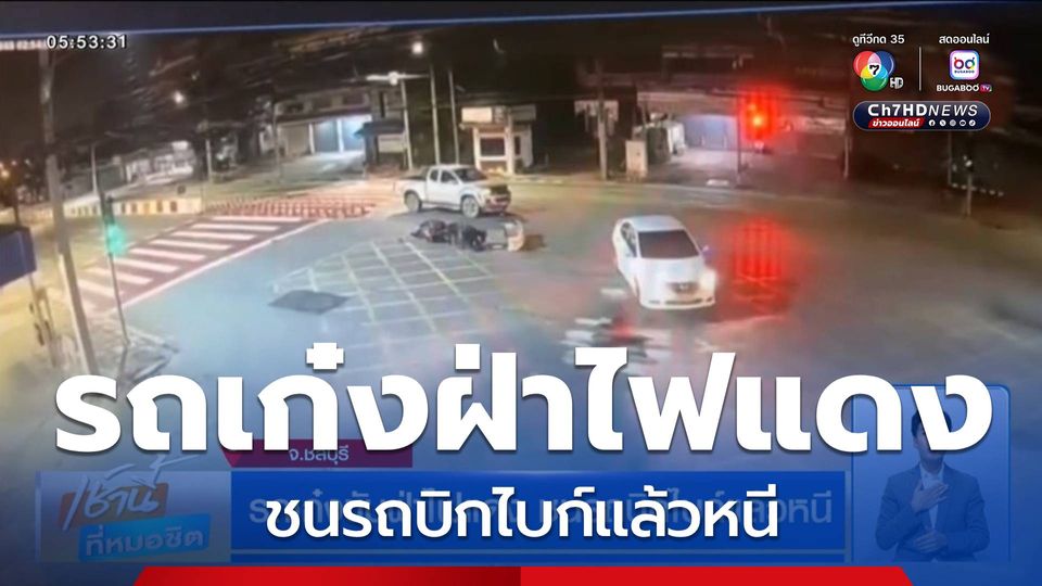 เช้านี้ที่หมอชิต - หนุ่มบาร์เทนเดอร์ ขี่จักรยานยนต์บิกไบก์กลับบ้าน ถูกเก๋งขับฝ่าไฟแดงเลี้ยวตัดหน้ากะทันหัน ชนประสานงากลางสี่แยกไฟแดง