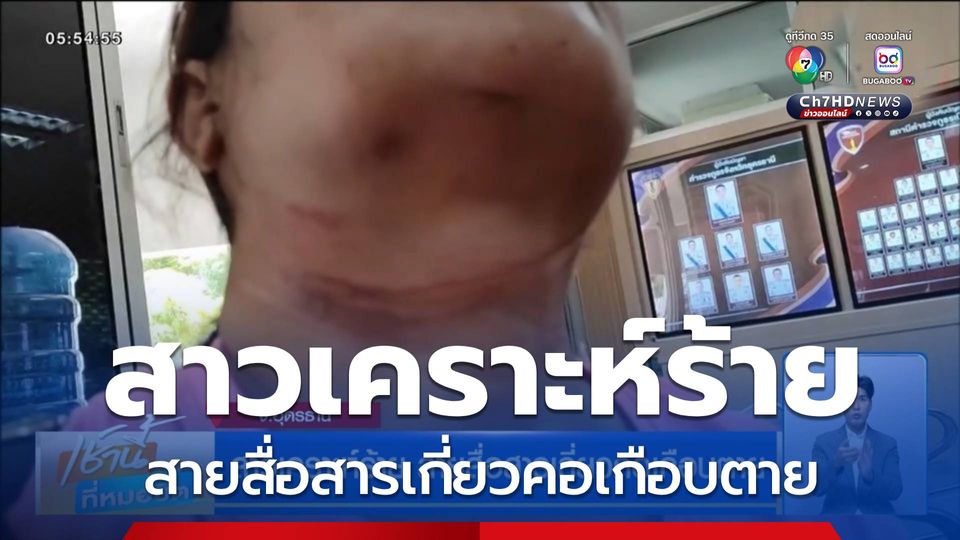 เช้านี้ที่หมอชิต - สาวเคราะห์ร้ายกำลังขี่รถจักรยานยนต์ไปทำงาน ถูกสายสื่อสารเกี่ยวคอรถเสียหลักล้มบาดเจ็บหนัก สามีถึงขั้นหิ้วปีกภรรยากันเข้าแจ้งความ