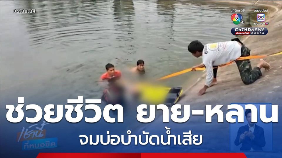 เช้านี้ที่หมอชิต - เด็กชาย อายุ 8 ขวบ พลัดตกบ่อบำบัดน้ำเสีย ยายเห็นกระโดดน้ำลงไปช่วยเหลือจมหายทั้งคู่ กู้ภัยปั๊มหัวใจ ช่วยเหลือสามารถยื้อชีวิตกลับมาได้