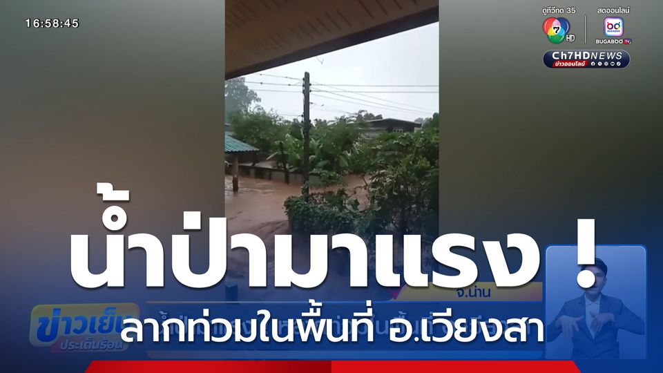 ข่าวเย็นประเด็นร้อน - ฝนตกหนักมาก ทำให้ น้ำป่าทะลัก เข้าท่วมบ้านเรือนที่อำเภอเวียงสา จังหวัดน่าน และแจ้งเตือนประชาชนที่อยู่ริมน้ำ แม่น้ำน่าน และลำน้ำสาขา เฝ้าระวัง