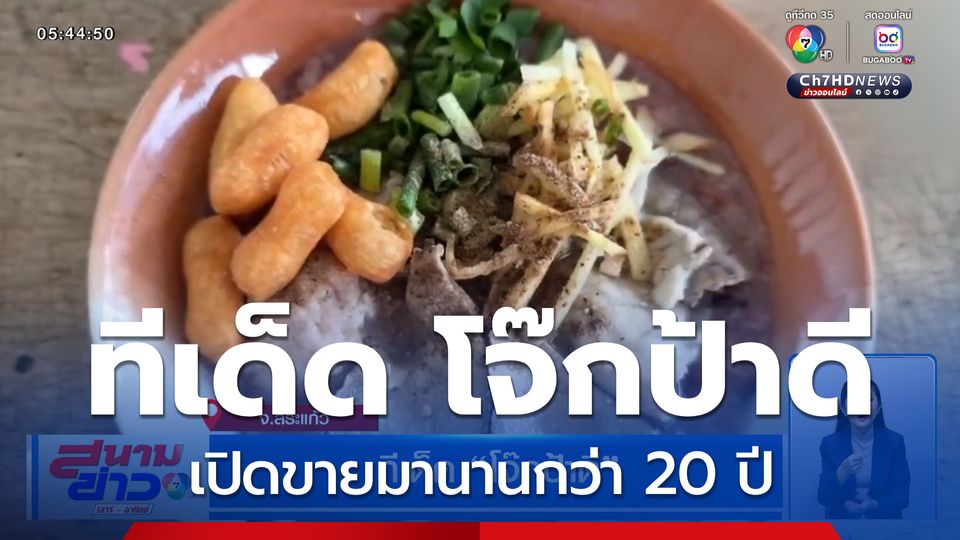 สนามข่าวเสาร์-อาทิตย์ - เช้า ๆ แบบนี้หิวกันหรือยัง พาไปที่จังหวัดสระแก้ว ไปกินโจ๊กร้านป้าดีเจ้าเก่า ที่เปิดขายมากว่า 20 ปี ทีเด็ดอยู่ที่หมูก้อน และโจ๊กที่เคี่ยวจนนุ่มลิ้น