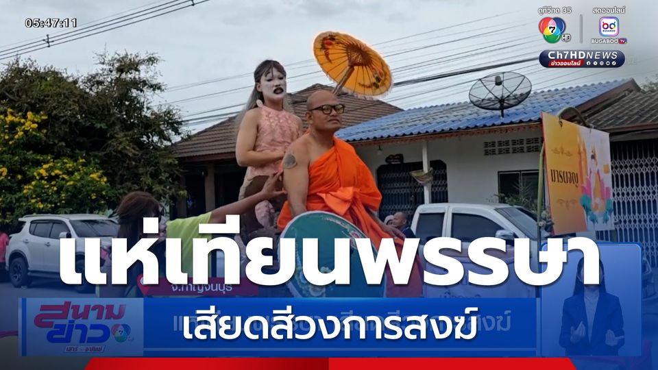 สนามข่าวเสาร์-อาทิตย์ - เมื่อวานหลายจังหวัดมีการจัดงานแห่เทียนพรรษา แต่ที่สร้างความฮือฮา เห็นจะเป็นจังหวัดกาญจนบุรี จัดขบวนแห่เทียนพรรษาเสียดสีวงการผ้าเหลือง