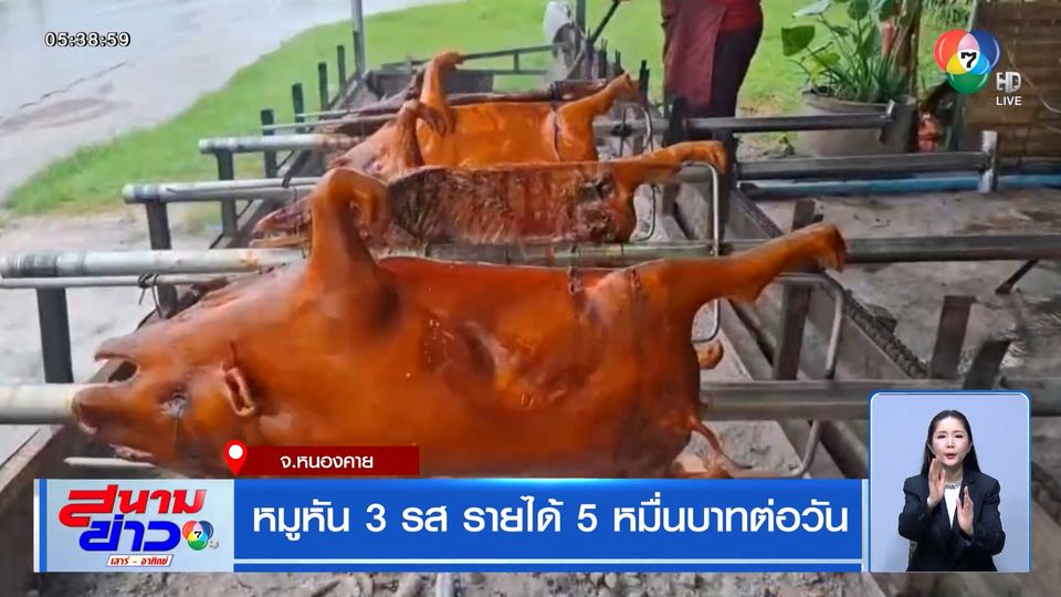 สนามข่าวเสาร์-อาทิตย์ - พาไปชิม หมูหันเจ้าดังเมืองหนองคาย หมักด้วยเครื่องเทศซอสสูตรเฉพาะของทางร้าน และยังมีน้ำจิ้ม 3 รสให้เลือก