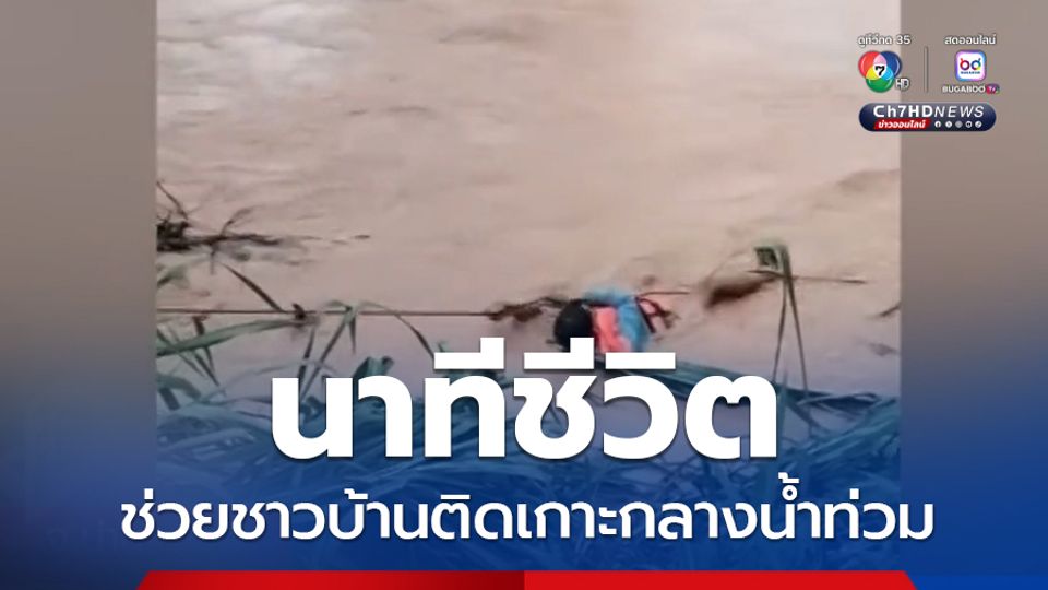 คลิปนาทีชีวิต เจ้าหน้าที่เข้าช่วยเหลือชาวบ้านที่ติดเกาะ หลังเกิดน้ำป่าหลากเข้าท่วมหมู่บ้านนาน้อย อำเภอนาน้อย จังหวัดน่าน