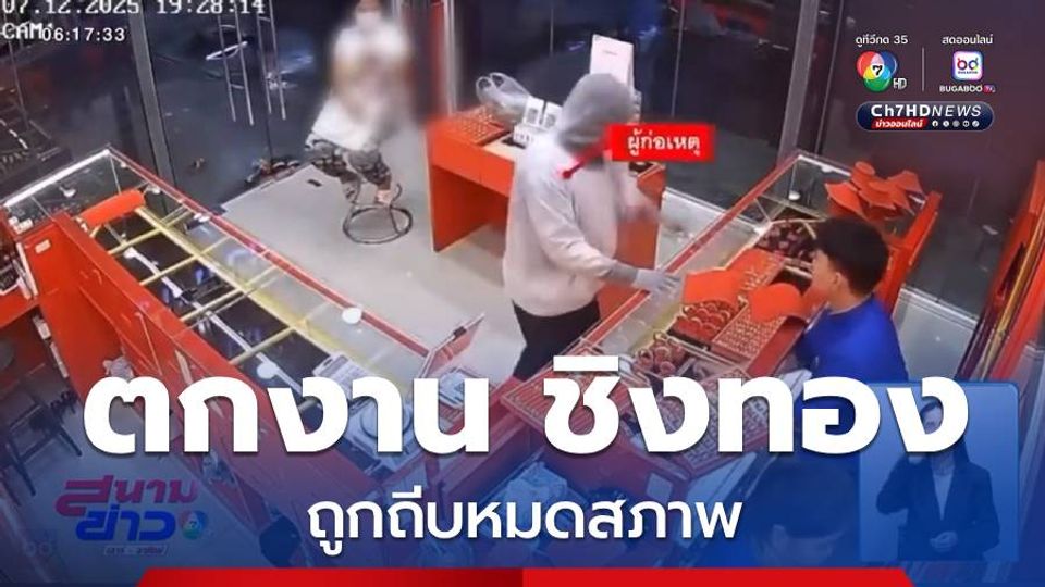 สนามข่าวเสาร์-อาทิตย์ - อดีตพนักงานขายของ ตกงาน ก่อเหตุชิงทอง แต่หนีไม่ทัน เพราะรูปร่างท้วม ถูกพนักงานไล่ตามและกระโดดถีบ ได้ทั้งตัว ได้ทั้งทองกลับคืน