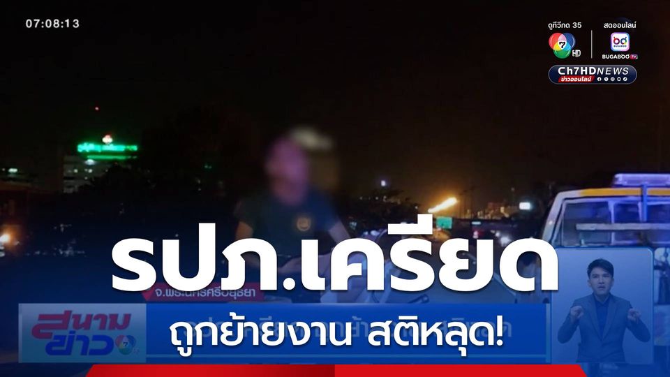 สนามข่าว 7 สี - รปภ.ที่จังหวัดพระนครศรีอยุธยา เครียดจะกระโดดสะพาน เพราะถูกหัวหน้างานย้ายให้ไปอยู่จุดอื่น ใครจะเกลี้ยกล่อมหรือเข้าใกล้ ชี้หน้าด่าหมด เจ้าหน้าที่ต้องรอจังหวะวิ่งเข้าชาร์จตัว