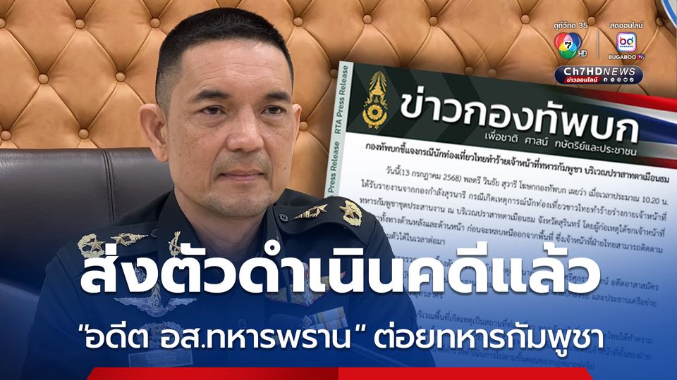 “กองทัพบก” ชี้แจงกรณีนักท่องเที่ยวไทยทำร้ายเจ้าหน้าที่ทหารกัมพูชา บริเวณปราสาทตาเมือนธม