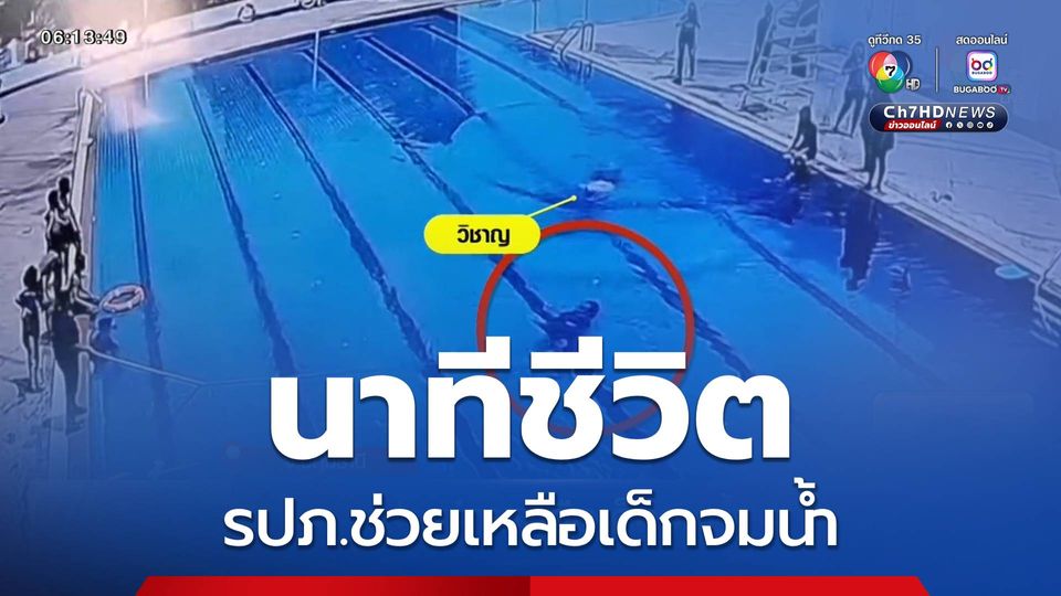 เช้านี้ที่หมอชิต - เด็กชายจมน้ำระหว่างเล่นน้ำในสระว่ายน้ำ รปภ.ที่เห็นเหตุการณ์กระโดดลงน้ำไปให้การช่วยเหลือ ไปชมภาพจากกล้องวงจรปิด