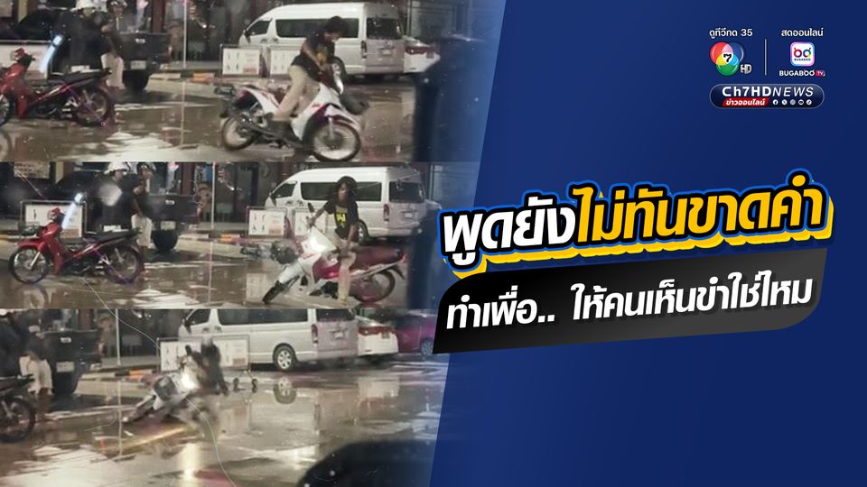 เหตุการณ์ครั้งนี้เกิดขึ้นในค่ำคืนที่ฝนตกพื้นเปียกลื่น โดยกลุ่มผู้โพสต์ก็ได้คอนเทนต์โดยบังเอิญ เมื่อเห็นหนุ่มวัยรุ่นขี่รถมอเตอร์ไซค์ และให้เพื่อนถ่ายคลิปการโชว์ดริฟต์เทพ ส่วนผู้โพสต์กับคนที่อยู่ในรถยนต์ ก็ได้แต่บอกว่าอย่าพุ่งมาชนรถก็พอ แต่พูดยังไม่ทันขาดคำ ด้วยความลื่นของพื้นที่เปียกอยู่แล้ว ยิ่งมาโชว์แบบนี้ ก็ทำให้เกิดอุบัติเหตุทันตาเห็น เข่ากระแทกพื้น เจ็บอาจแค่เล็กน้อย แต่คนที่เห็นขำหนักมาก แม้แต่เพื่อนที่มาด้วยกันที่ยืนดูและถ่ายคลิปให้ยังกลั้นขำไม่ไหว ไม่ได้ช่วยเพื่อน ได้แต่ช่วยขำ ยิ่งกลุ่มผู้โพสต์ที่เห็นเหตุการณ์ ก็ยิ่งขำกันอย่างอร่อย