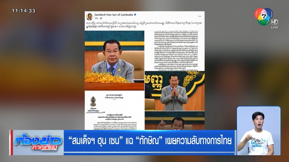 ห้องข่าวภาคเที่ยง - "สมเด็จฯ ฮุน เซน" แฉ "ทักษิณ" แอบส่งความลับของทางการไทยให้ตน ระบุ การกระทำของ "ทักษิณ" เป็นการทรยศชาติ