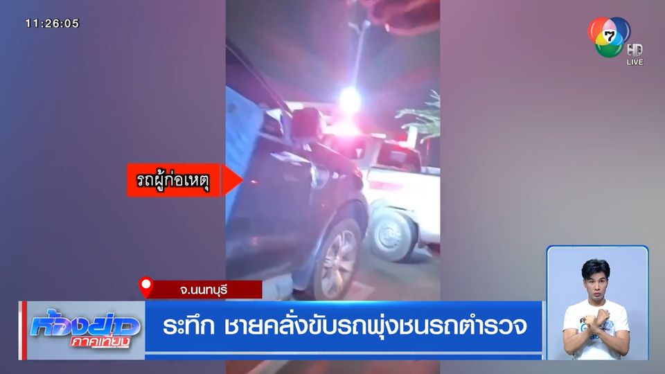 ระทึก ชายคลั่งขับรถพุ่งชนรถตำรวจ จ.นนทบุรี