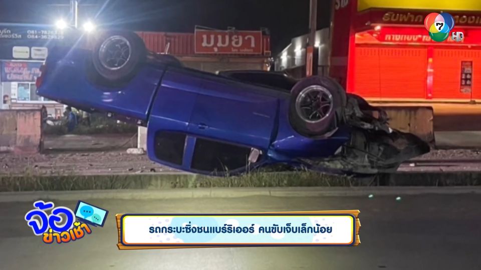 จ้อข่าวเช้า - รถกระบะซิ่งชนแบร์ริเออร์ คนขับเจ็บเล็กน้อย