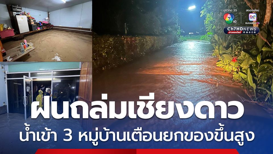 น้ำป่าไหลเข้า 3 หมู่บ้าน อ.เชียงดาว หลังฝนถล่ม ฝ่ายปกครองเตือนขนของหนีน้ำ สั่งนำกระสอบทรายสร้างแนวป้องกันน้ำลดผลกระทบ
