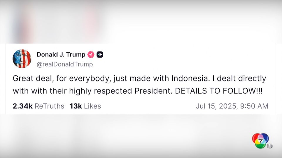 ประธานาธิบดี โดนัลด์ ทรัมป์ แห่งสหรัฐฯ เปิดเผยว่า สหรัฐฯ จะเรียกเก็บภาษีนำเข้ากับอินโดนีเซียในอัตรา 19% หลังบรรลุการเจรจาภาษีใหม่กับอินโดนีเซีย โดยเมื่อสัปดาห์ก่อน ทรัมป์ เพิ่งประกาศภาษีใหม่กับอินโดนีเซีย ในอัตรา 32% ซึ่งจะเริ่มเก็บในวันที่ 1 สิงหาคมนี้ และหากมีการขนถ่ายสินค้าจากประเทศที่มีอัตราภาษีนำเข้าสูงกว่าผ่านทางอินโดนีเซีย อัตราภาษีนำเข้านั้นจะถูกเพิ่มเข้าไปในอัตราภาษีที่อินโดนีเซียต้องจ่าย