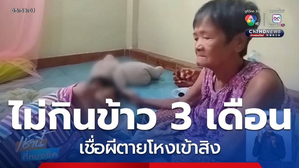 เช้านี้ที่หมอชิต - ครอบครัวทุกข์ใจ หญิงอายุ 50 ปี ประสบอุบัติเหตุ ไม่กินข้าว 3 เดือน ร่างกายซูบผอม มีกลิ่นเหม็นสาบ พระและหมอดู บอกว่า ถูกผีตายโหงเข้าสิง เพื่อความสบายใจ วานนี้ พระไปช่วยทำน้ำมนต์ให้อาบ
