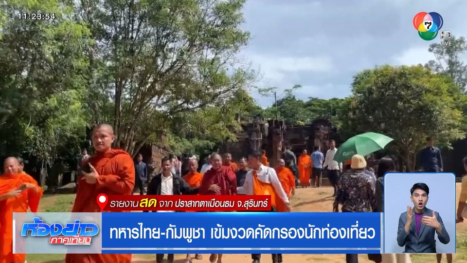ห้องข่าวภาคเที่ยง - บรรยากาศที่ปราสาทตาเมือนธม วันนี้ เจ้าหน้าที่ทั้งไทยและกัมพูชามีการดำเนินการตามที่ตกลงกันไว้ หลังเกิดเหตุการณ์ชุลมุนไปเมื่อวันก่อน ขณะที่ชาวบ้านยังอุ่นใจเพราะมีกำลังทหารดูแล ไปติดตามกับ คุณเกียรติชัย บุญราโส รายงานสดจาก ปราสาทตาเมือนธม จังหวัดสุรินทร์