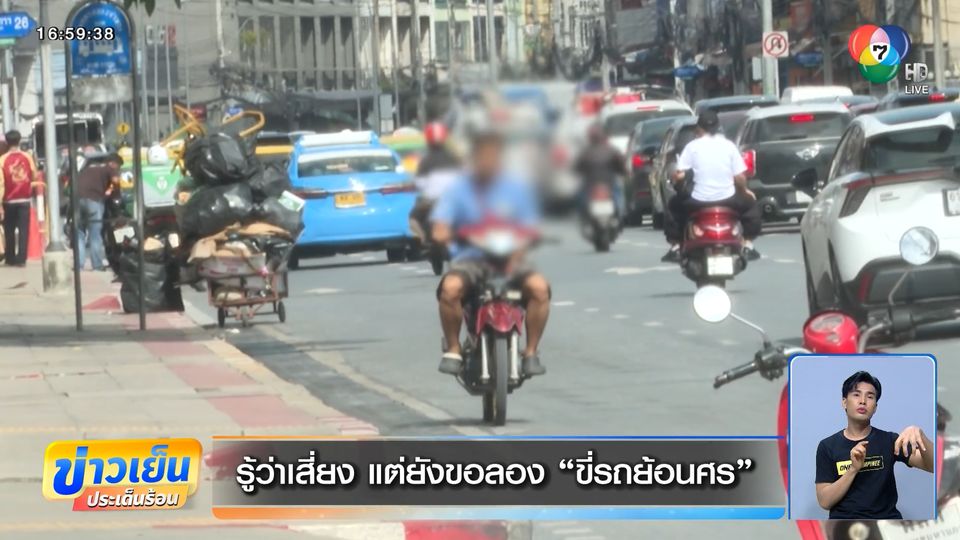 ข่าวเย็นประเด็นร้อน - เรื่องนี้ นำมาเตือนคนใช้รถใช้ถนน ขี่รถย้อนศร ไม่แคร์กฎหมาย ขนาดผู้สื่อข่าวเราไปเจอ ก็ยังจะขี่ไปต่อ บอกว่า "ขอโทษที รอบนี้ขอไปก่อน"