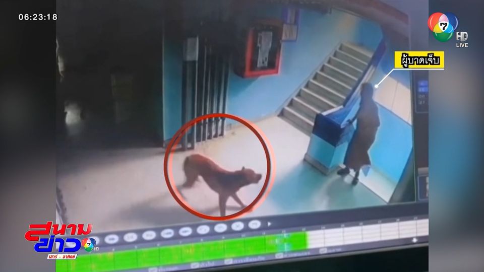 กล้องวงจรปิดภายในคอนโดมิเนียมแห่งหนึ่งที่จังหวัดสมุทรปราการ บันทึกภาพสุนัขตัวใหญ่ ที่หลุดจากโซ่ที่ล่าม วิ่งเข้าไปเห่าใส่คุณยาย อายุ 76 ปี ที่กำลังเดินขึ้นบันได ทำให้คุณยายตกใจ จนเสียหลักหงายหลังตกบันไดได้รับบาดเจ็บ ก่อนที่เจ้าของจะวิ่งมาจับสุนัขไว้