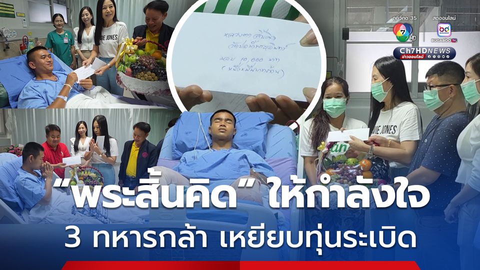 วันนี้ (19 ก.ค. 68) ผู้สื่อข่าวรายงานว่า เมื่อเวลา 14.00 น. ที่ผ่านมา หลวงตาสินทรัพย์ จรณธัมโม หรือ พระสิ้นคิด ได้ส่งตัวแทน โดย น.ส.ธนชนก สุริยเดชสกุล นายกสโมสรไลออนส์ชยางกูรอุบล ที่ปรึกษากองอำนวยการรักษาความสงบภายในกองทัพภาคที่ 2 นำกระเช้าผลไม้ และ เงินสดนำไปมอบให้กับ พลทหารธนพัฒน์ หุยวัน ส.อ.ปฏิพัทธ์ ศรีลาศักดิ์ พลทหารณัฐวุฒิ ศรีเข้ม คนละ 1 หมื่นบาท เพื่อเป็นขวัญและกำลังใจให้กับทหารทั้ง 3 นาย ที่เหยียบทุ่นระเบิดได้รับบาดเจ็บขณะลาดตระเวนบริเวณช่องบก อ.น้ำยืน จ.อุบลราชธานี เมื่อวันที่ 16 ก.ค.ที่ผ่านมา จนส่งผลให้ พลทหารธนพัฒน์ หุยวัน ต้องตัดขาซ้ายตั้งแต่ใต้หัวเข่าลงไป