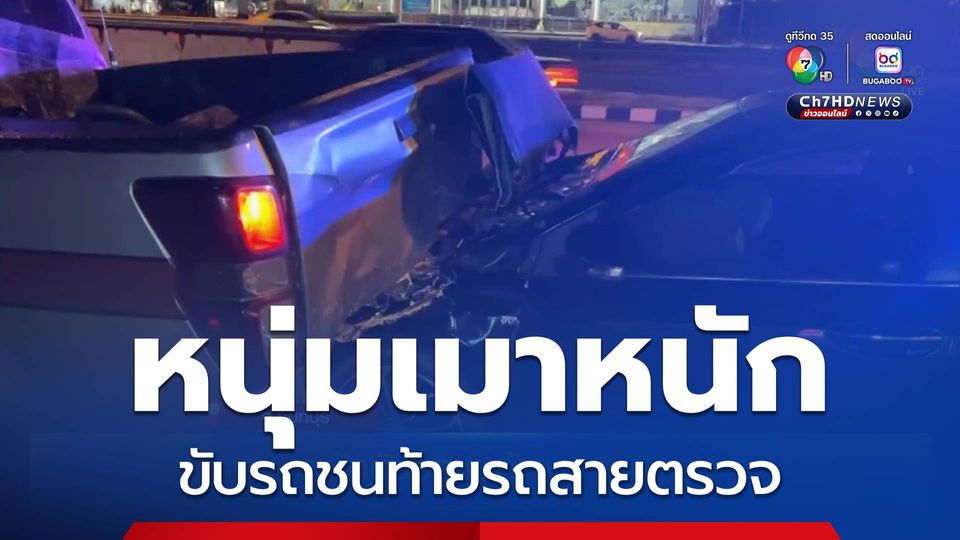 ข่าวเด็ด 7 สี - เกิดเหตุชายขับรถเก๋งชนท้ายรถสายตรวจ ได้รับบาดเจ็บ 1 นาย ตรวจวัดแอลกอฮอล์พุ่งสูง 181 มิลลิกรัมเปอร์เซ็นต์