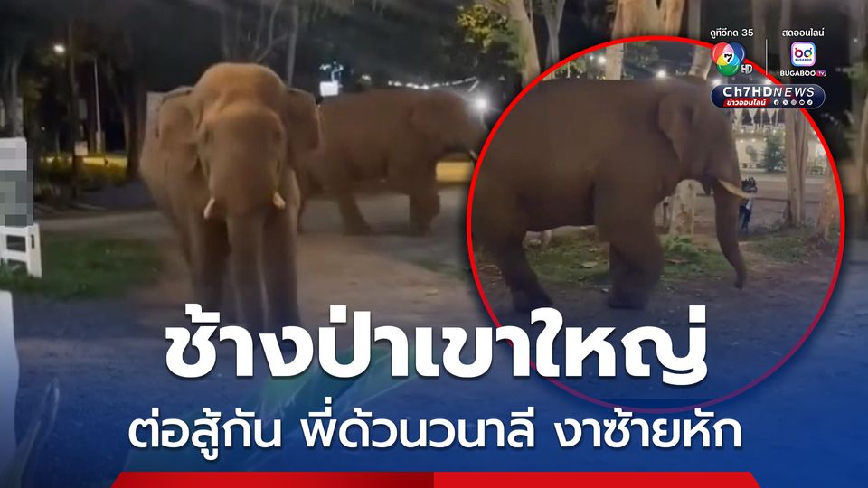 พี่ด้วนวนาลี ช้างป่าเขาใหญ่ งาหัก หลังต่อสู้กับ ช้างป่างาเบี่ยงใหญ่ ส่วนสาเหตุการต่อสู้กันของช้างป่า 2 ตัว ยังไม่ทราบ เพราะขณะนี้มีการผลัดเปลี่ยนถิ่นหากิน จากตำบลหมูสีไปตำบลหนองน้ำแดง