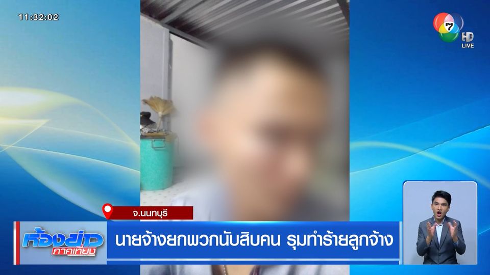 ห้องข่าวภาคเที่ยง - นายจ้างโหดฉุนลูกน้องทวงเงินค่าจ้าง ยกพวกกว่า 20 คน อาวุธครบมือ รุมกระทืบเจ็บสาหัส ก่อนขู่ทิ้งท้าย ไล่ออกจากบ้านพัก