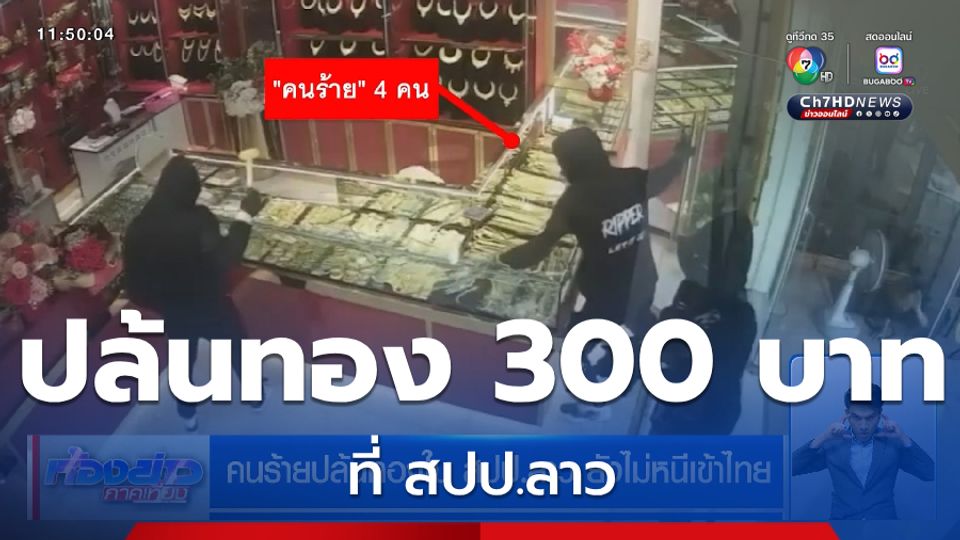 ห้องข่าวภาคเที่ยง - เรียกว่าระทึก กลางเมืองสะหวันนะเขต สปป.ลาว คนร้าย 4 คน บุกพร้อมอาวุธครบมือบุกปล้นร้านทอง กวาดทองน้ำหนักประมาณ 300 บาท หรือ เป็นเงินไทยก็ประมาณ 15 ล้านบาท หลบหนีไป