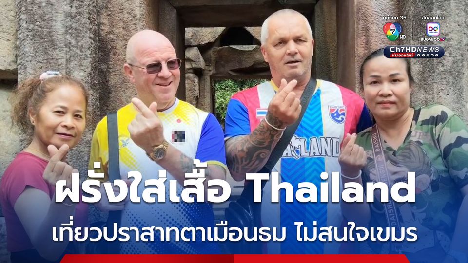 ชาวต่างชาติ สัญชาตินอร์เวย์ ใส่เสื้อที่มีลายธงชาติไทย พร้อมพิมพ์คำว่า ”THAILAND” เที่ยวปราสาทตาเมือนธม ไม่สนใจเขมร