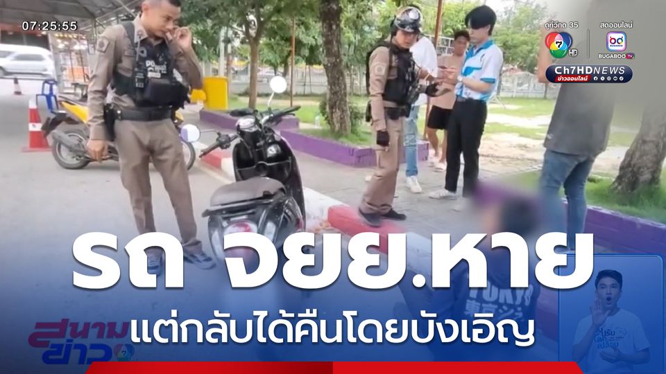 สนามข่าว 7 สี - ส่วนใหญ่เวลารถจักรยานยนต์ถูกขโมย มักจะไม่ได้คืน นักศึกษาหนุ่มคนนี้ รถจักรยานยนต์ถูกขโมยหายไปเกือบเดือน เมื่อวานนี้ นั่งกินหมูกระทะที่ร้าน เห็นคนร้ายที่ขโมยรถไปขี่รถผ่านมาโดยบังเอิญ จึงรีบขี่รถไล่ตาม
