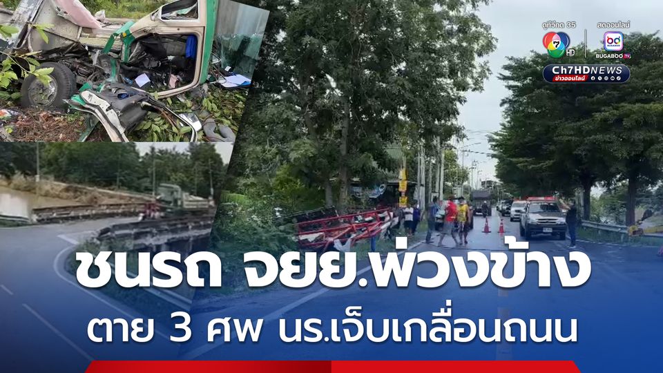สลด! หกล้อ เฉี่ยวชนรถ จยย.พ่วงข้างรับ-ส่งนักเรียน เด็กรถหกล้อดับ ส่วนนักเรียนตาย 2 เจ็บอื้อ