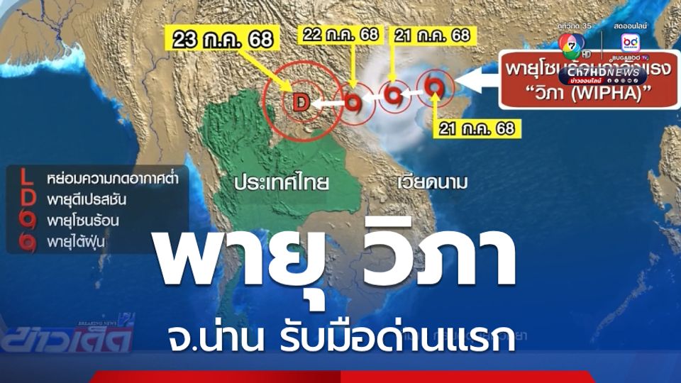 ข่าวเด็ด 7 สี - พายุวิภา กำลังเคลื่อนตัวไปทาง สปป.ลาว คาดว่าจะอ่อนกำลังลงเป็นดีเปรสชัน โดย จังหวัดน่าน จะเป็นด่านแรก รับมืออิทธิพลพายุ