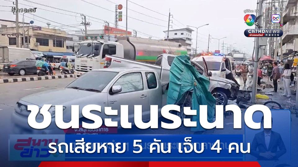 ฝนตกพรำ ๆ ชนระเนระนาดกลางถนน จ.สมุทรปราการ