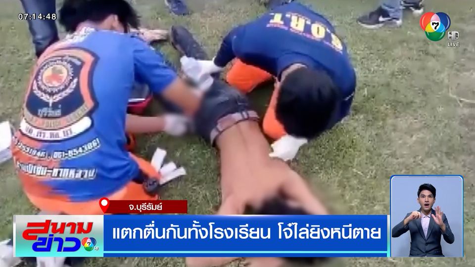 สนามข่าว 7 สี - เหตุการณ์นี้ที่จังหวัดบุรีรัมย์ ทำเอาแตกตื่นกันทั้งโรงเรียน เมื่อเยาวชนเลือดร้อนยิงกันบาดเจ็บ คนที่ถูกยิงวิ่งหนีตายเข้าไปขอความช่วยเหลือในโรงเรียน