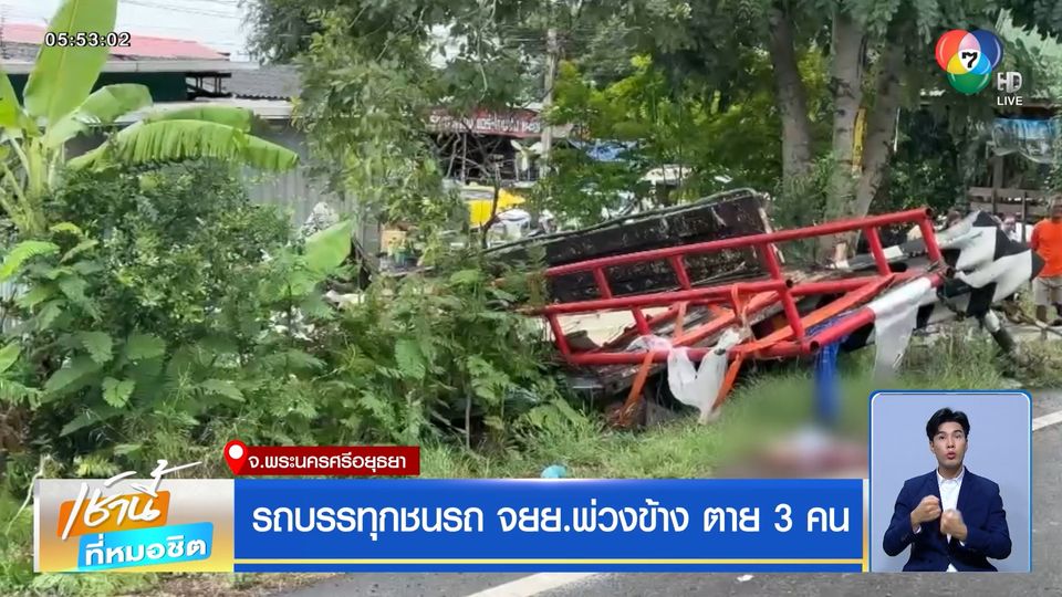 เช้านี้ที่หมอชิต - จังหวัดพระนครศรีอยุธยา รถบรรทุกชนรถจักรยานยนต์พ่วงข้าง เสียชีวิต 3 คน