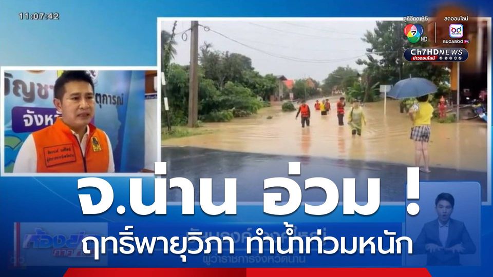 ห้องข่าวภาคเที่ยง - อิทธิพลพายุ "วิภา" ทำฝนตกหนัก ฝนพื้นที่จังหวัดน่าน วัดปริมาณน้ำฝนเกือบ 300 มิลลิเมตร โดยเฉพาะพื้นที่อำเภอปัว ตอนนี้น้ำกำลังไหลลงแม่น้ำน่าน จะเข้าท่วมพื้นที่ลุ่มต่ำอำเภอท่าวังผาและเมืองน่าน ช่วงเที่ยงนี้