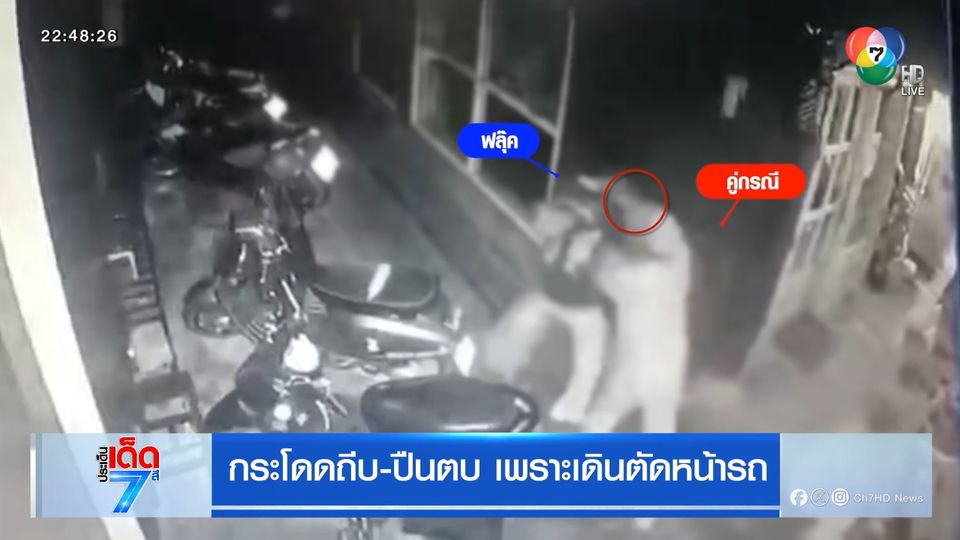ประเด็นเด็ด 7 สี - ภายในซอยแคบ ๆ แค่เดินตัดหน้ารถแล้วหันไปมองแรง ก็นำไปสู่การทำร้ายร่างกายกันได้แล้ว อย่างคดีนี้ที่หนุ่ม-สาว 2 คน ถูกคนขับรถคู่กรณีตามมากระโดดถีบหลัง และเอาปืนตบกกหู