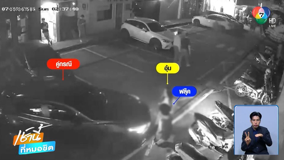 วิ่งไล่ตามไปกระโดดถีบ น้องอุ้ม จนเสียหลักล้ม นายฟลุ๊ค จึงหันมาต่อสู้ ถีบและไล่ต่อยผู้ก่อเหตุ แต่กลับถูกปืนตบกกหู และเล็งปืนใส่ ก่อนผู้ก่อเหตุจะเดินจากไป