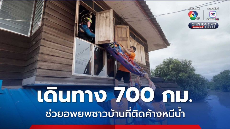 กู้ภัยอโสกร่องคำ จาก จ.กาฬสินธุ์ นำเรือท้องแบนเดินทางไกลกว่า 700 กิโลเมตร เร่งช่วยเหลือคนติดค้างในบ้านเรือน